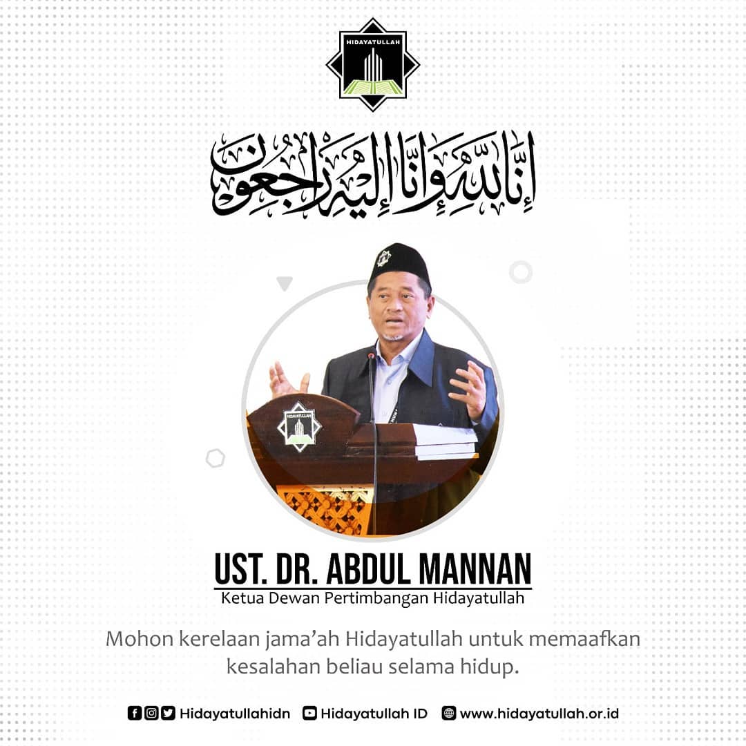Kemarin, Selasa, 20 April 2021 bertepatan dengan 9 Ramadhan 1442 Hijriyah, jam 17.00 sore mas Muhammad Sulthon, putra beliau mengirim pesan bahwa ayahnya sudah dipanggil menghadap Allah. Saat itu, kami sedang halaqah, di sore hari, sambil menunggu berbuka. Ternyata Allah lebih sayang kepada beliau. Selamat jalan murabbiku, Al Ustadz KH. Dr. Abdul Mannan, MM. Semoga Allah menerima semua Amal solehmu, mengampuni segala dosamu, dan mendapatkan termpat terbaik disisi-Nya. Semoga kita dipertemukan di jannah-Nya, kelak, Amiin ya rabb